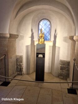 995 war es dann soweit. Otto III. war nun mündig um allein zu regieren. Als Geschenk seiner Dankbarkeit schenkte er Bischof Bernward eine Reliquie - ein Stück vom Kreuz des Herrn. Bernward stiftet hierauf eine Kapelle "zum heiligen Kreuz", die 996 eingeweiht wurde. Und Otto wurde am 21.05.996 von Papst Gregor V. in Rom zum Kaiser gekrönt.